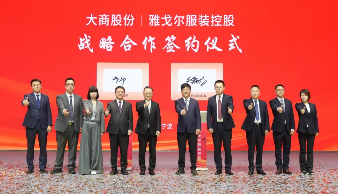 中国男装品牌雅戈尔与大商股份在宁波雅戈尔总部签订战略合作协议。