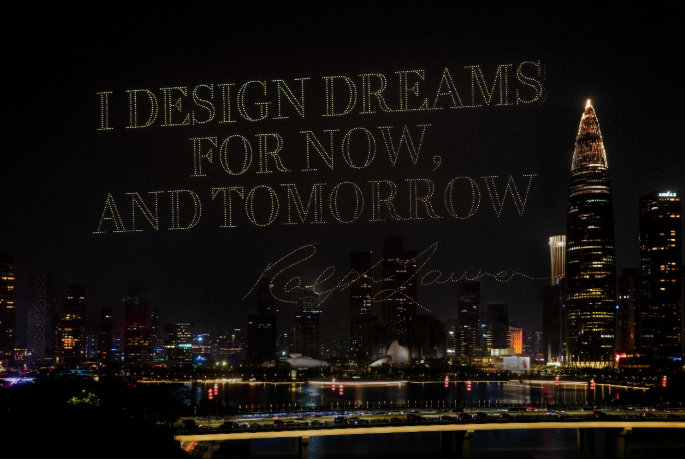 夜幕低垂,千架无人机翩然升空。微光渐聚,勾勒出优雅从容的骏马姿态,似踏浪而行,气韵生动。骑手身影渐显,挥杆之间驰骋向前,尽显奔涌之势。万千光影汇聚,化作品牌经典小马标,定格于深圳夜空。最终,劳伦先生精选语录“I DESIGN DREAMS FOR NOW, AND TOMORROW” (我所勾勒的梦想,为当下、亦为明日)映入夜幕,激励每一颗追求梦想与恒远的本真之心。