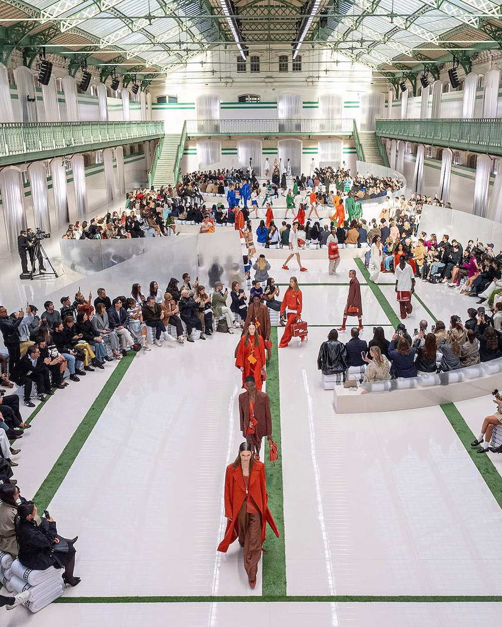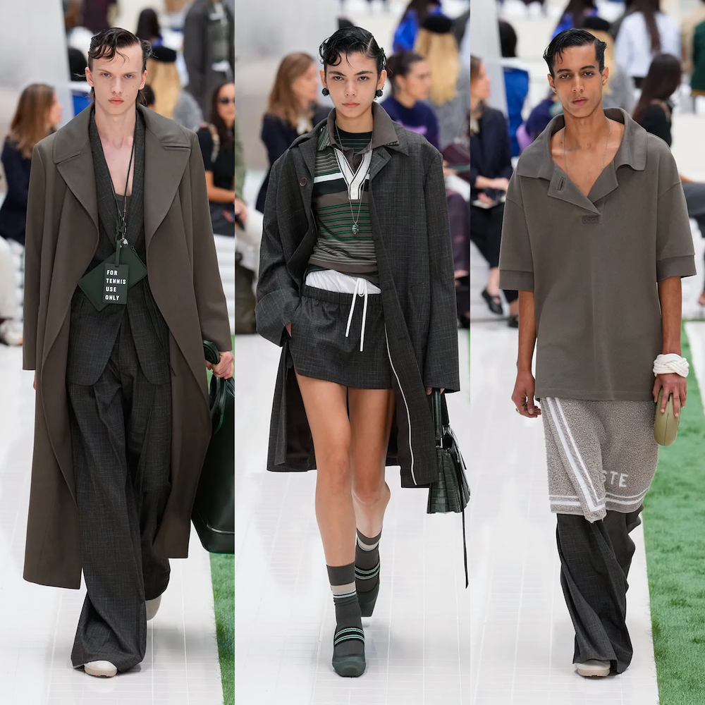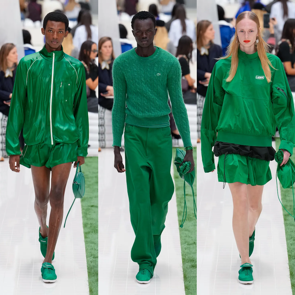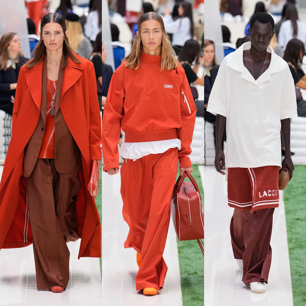 LACOSTE 2026春夏巴黎时装秀于10月5日举行。秀场位于巴黎 Lycée Carnot 埃菲尔大厅,LACOSTE 将其打造为「更衣室」。品牌创意总监 Pelagia Kolotouros 以全新时尚视角诠释品牌运动基因,聚焦品牌创始人早年训练岁月中的纯粹初心。本系列每件单品皆从真实着装场景中汲取创意灵感,通过宽松廓形与重构 Polo 衫延续设计探索:Oversize 版型、透明尼龙面料搭配空灵感结构设计,或与点缀复古运动元素的阔腿裤组合。
