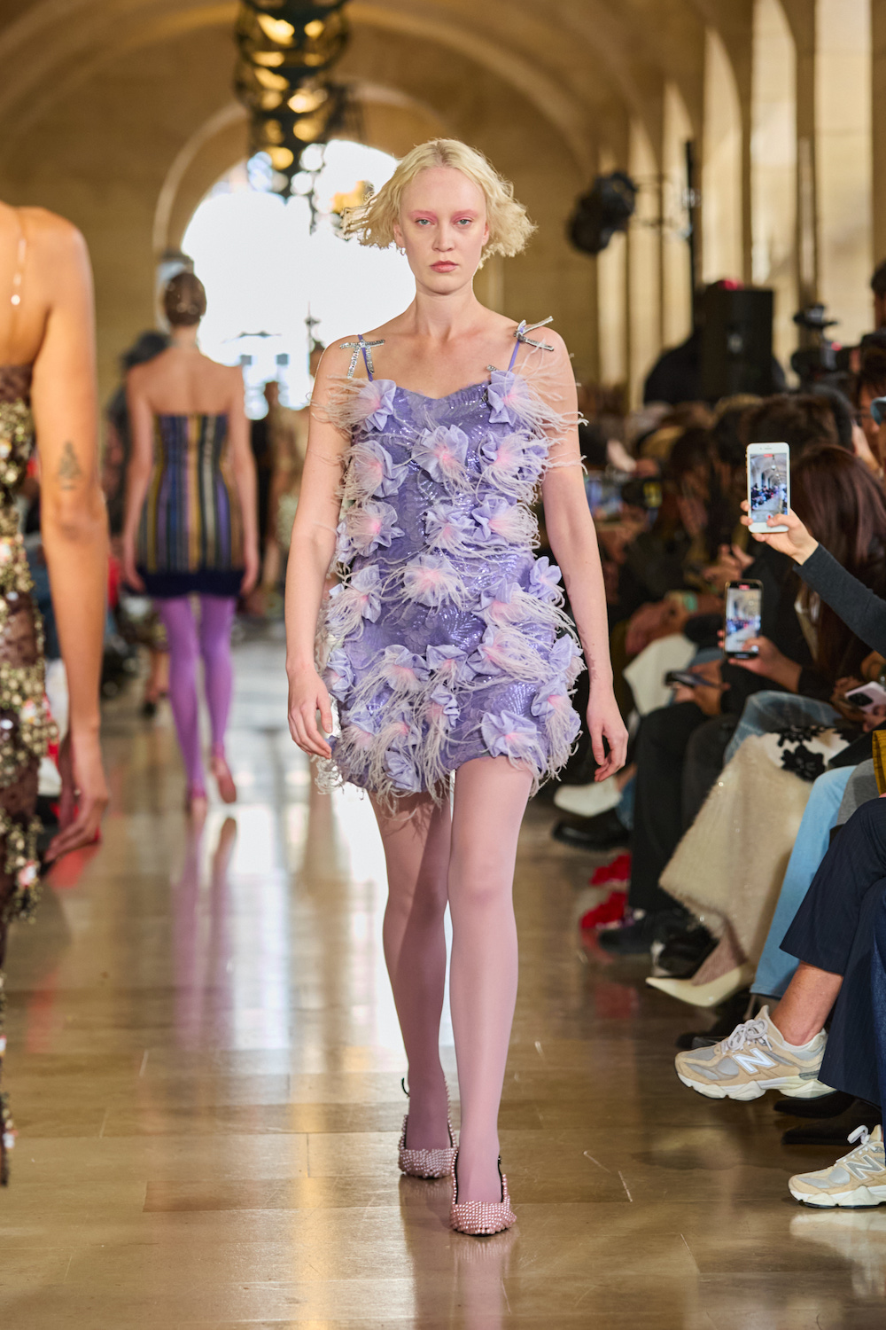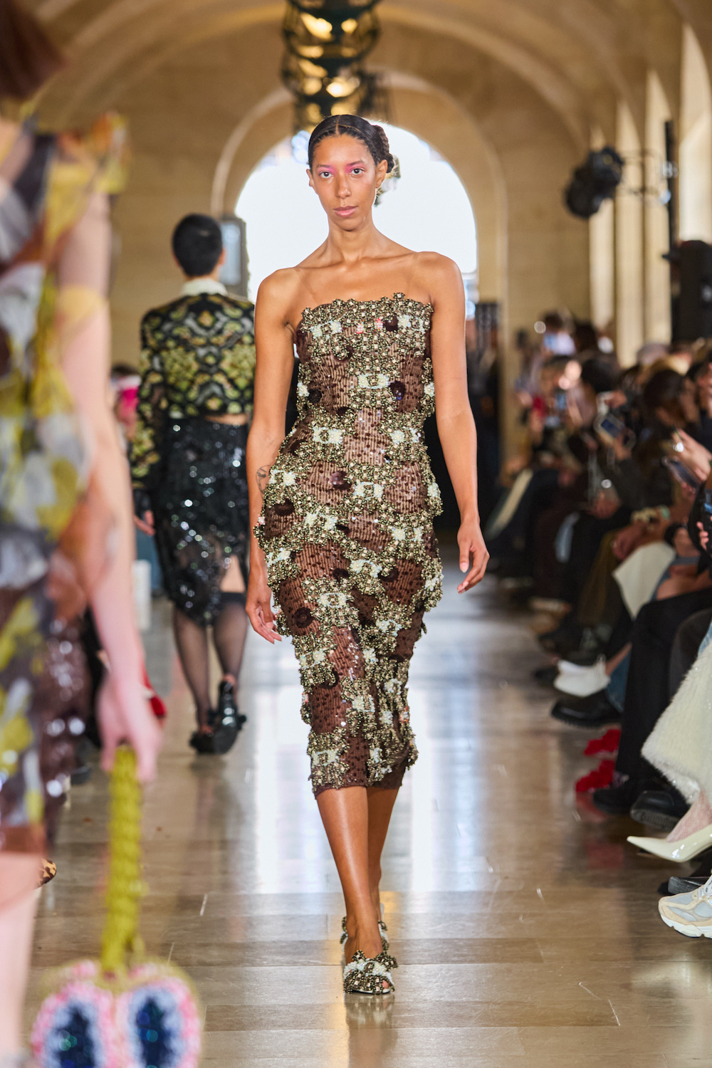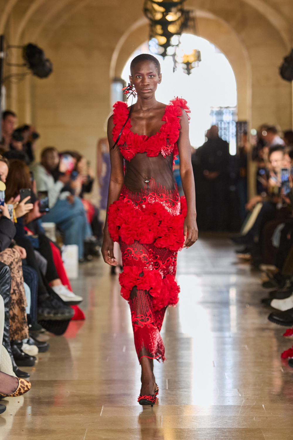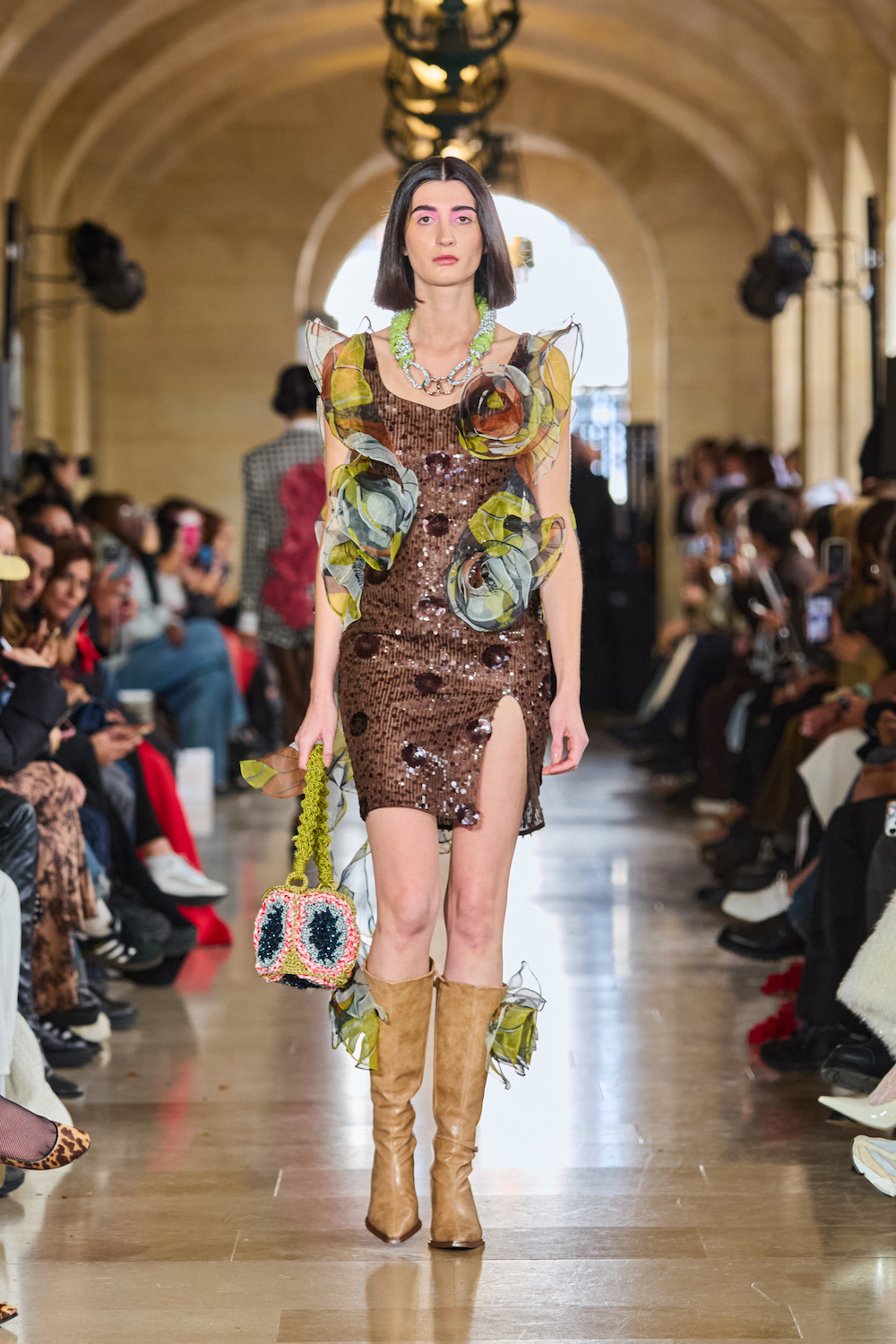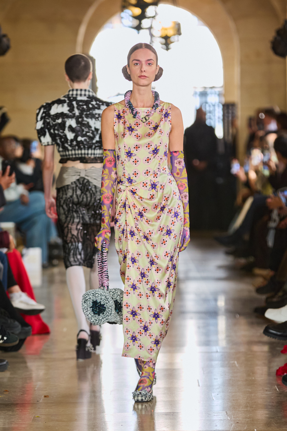裘淑婷 Shuting Qiu 2026 春夏系列以《以柔破界》为主题,是一场以柔克刚的宣言,也是对当代浪漫的一次重释。在系列中,蝴蝶结肆意绽放,立体花卉生机盎然,戏剧性的荷叶边随步伐律动,黑白刺绣在浪漫与张力之间游走。这些曾象征少女的装饰,如今成为女性自信的符号。