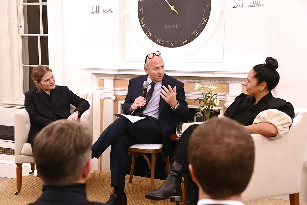 10月13日晚,英国男士奢华品牌dunhill与Frieze Masters(弗里兹大师展)共同庆祝2025年dunhill x Frieze Masters Talks(对话弗里兹大师)系列对谈正式启幕——这已是双方第三年携手,旨在推动艺术、文化与设计领域的创意对话。