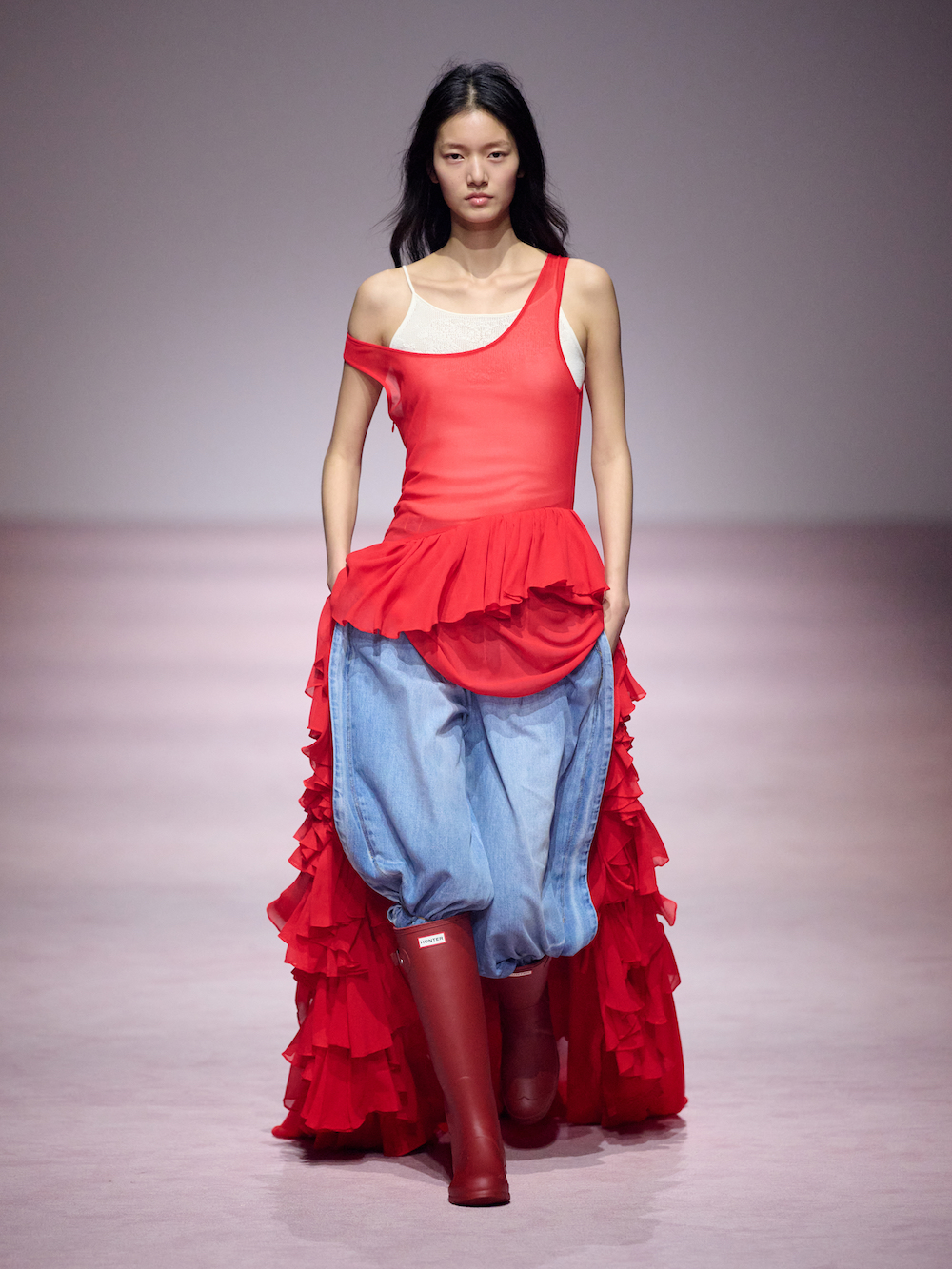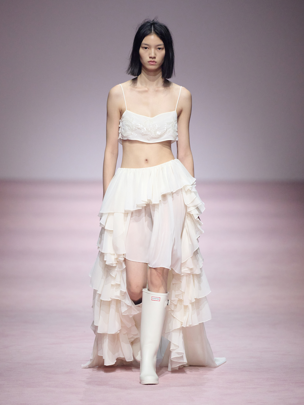作为 Authentic Plus 的启幕之作,Authentic 于2026春夏上海时装周期间,呈现旗下标志性品牌 HUNTER 与中国高级时装品牌XU ZHI的秀场联名合作。在此次合作中,XU ZHI以8套独特的秀场造型,对HUNTER的经典雨靴进行创意重塑。