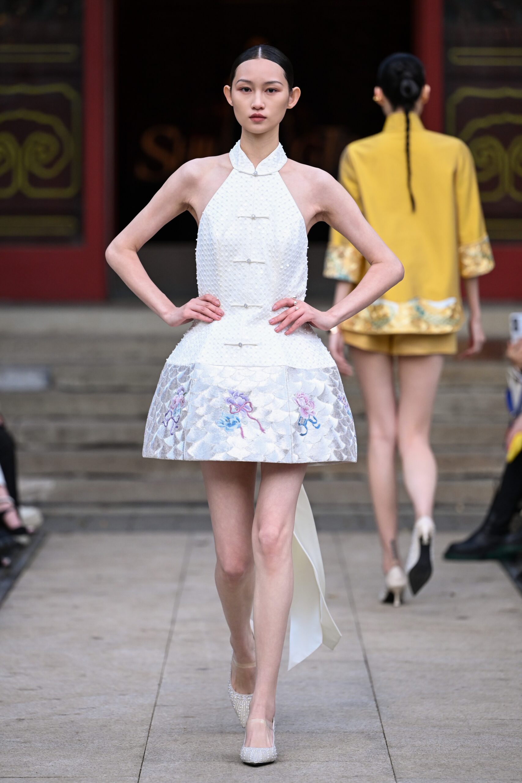 10月17日,新中式高定品牌「时从今」于北京郡王府呈现以“水・生生不已”为主题的2026春夏高级定制大秀。本次大秀以“水利万物而不争”为核心哲思,将老子《道德经》中“上善若水”的智慧与皇家云锦工艺相融合,探索东方美学在可持续时尚中的永恒价值。