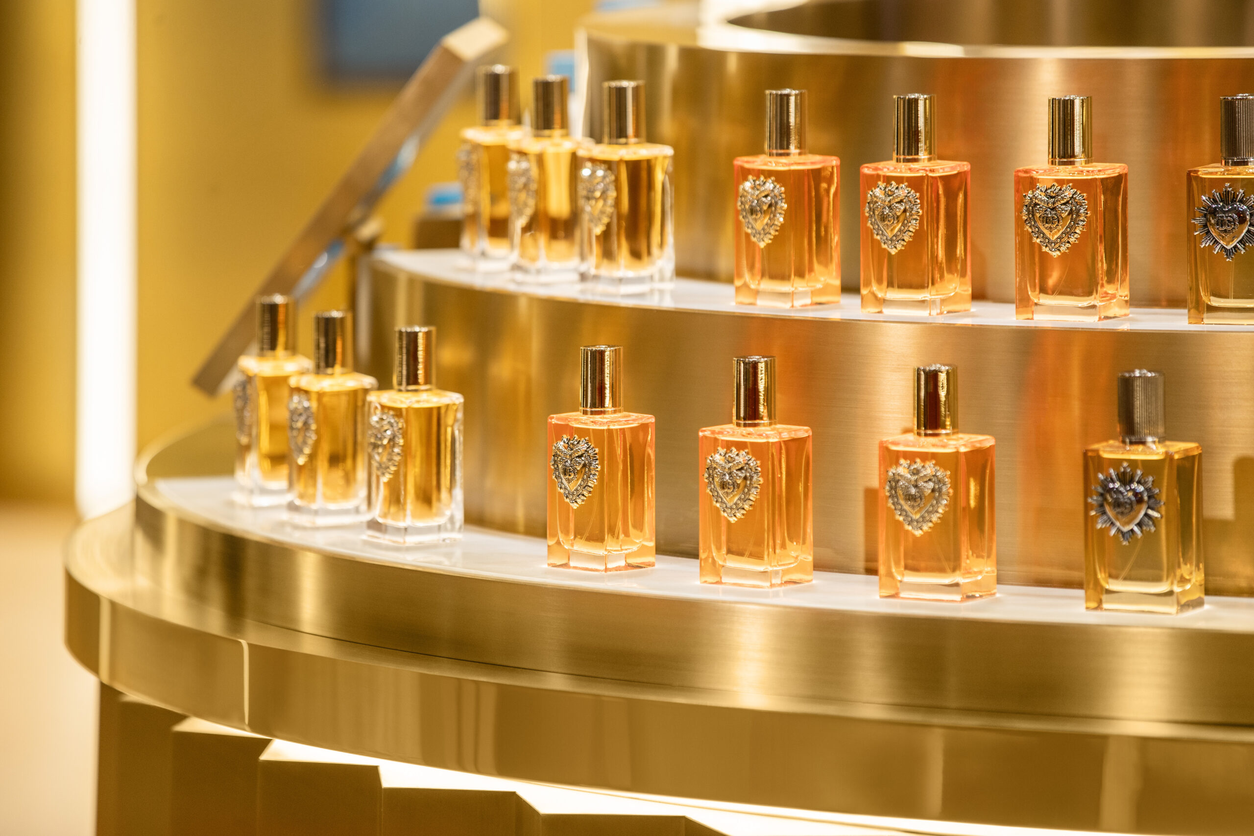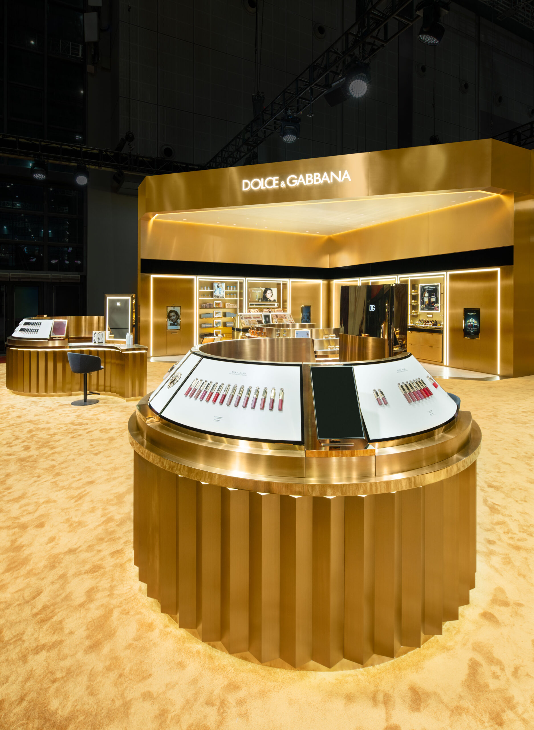 本次进博会,杜嘉班纳展台化身沉浸式美妆空间,旨在将美学特质、展陈功能与剧场感布景融为一体。空间以金色为主色调 --金色象征光与能量,也是品牌标志性色彩之一,辉映于严谨的立体几何结构的展陈设计中辅以光影流转效果,折射出产品与材质的珍贵质感。置身于此访客将步入多重感官探索之旅:香氛与彩妆互动区结合动态演示台,以数字体验揭示全系列产品潜能。为了聚焦并深入探讨本土风尚,杜嘉班纳特别打造金色环形剧场,将举办主题论坛以及香氛与彩妆大师课。