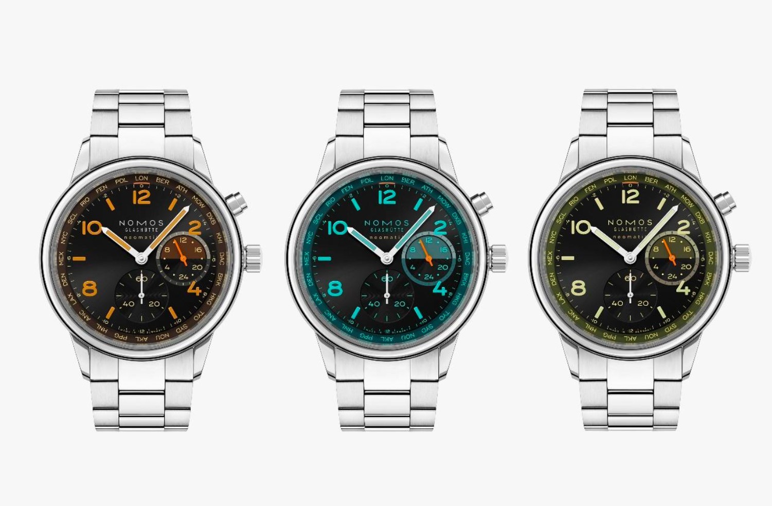 NOMOS Glashütte 推出限量版世界时腕表 “夜航” (Night Navigation) 系列。这是一款可应对各种场合的全能腕表,配备坚固、防水的表壳,搭载 NOMOS 在格拉苏蒂自主研发的强劲自动机芯,以及清晰而富有色彩的设计。其厚度仅为9.9毫米,也是同类产品中最纤薄的。