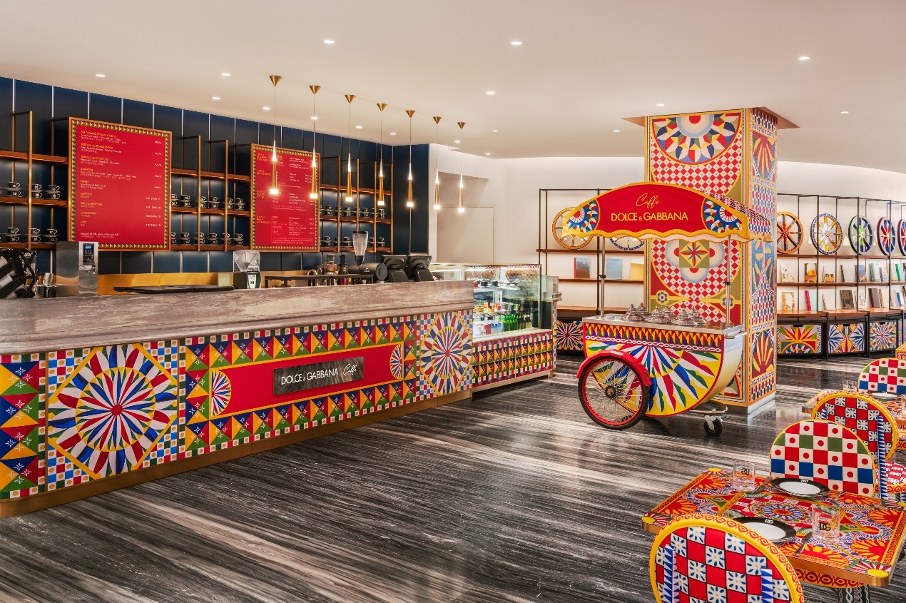 杜嘉班纳DG Caffè于2025年11月15日至2026年2月28日在北京SKP开幕。 DG Caffè坐落于北京SKP四楼,比邻杜嘉班纳女装精品店,秉承品牌“意大利制造”的精髓,将独特的美食烹饪传统与匠艺美学融合,致敬经典的同时传递“匠人匠心”精神。空间设计延续品牌经典美学,以品牌标志性的西西里马拉车民俗印花为核心元素,营造斑斓迷人的西西里风情,开启多感官交织的意式风味之旅。