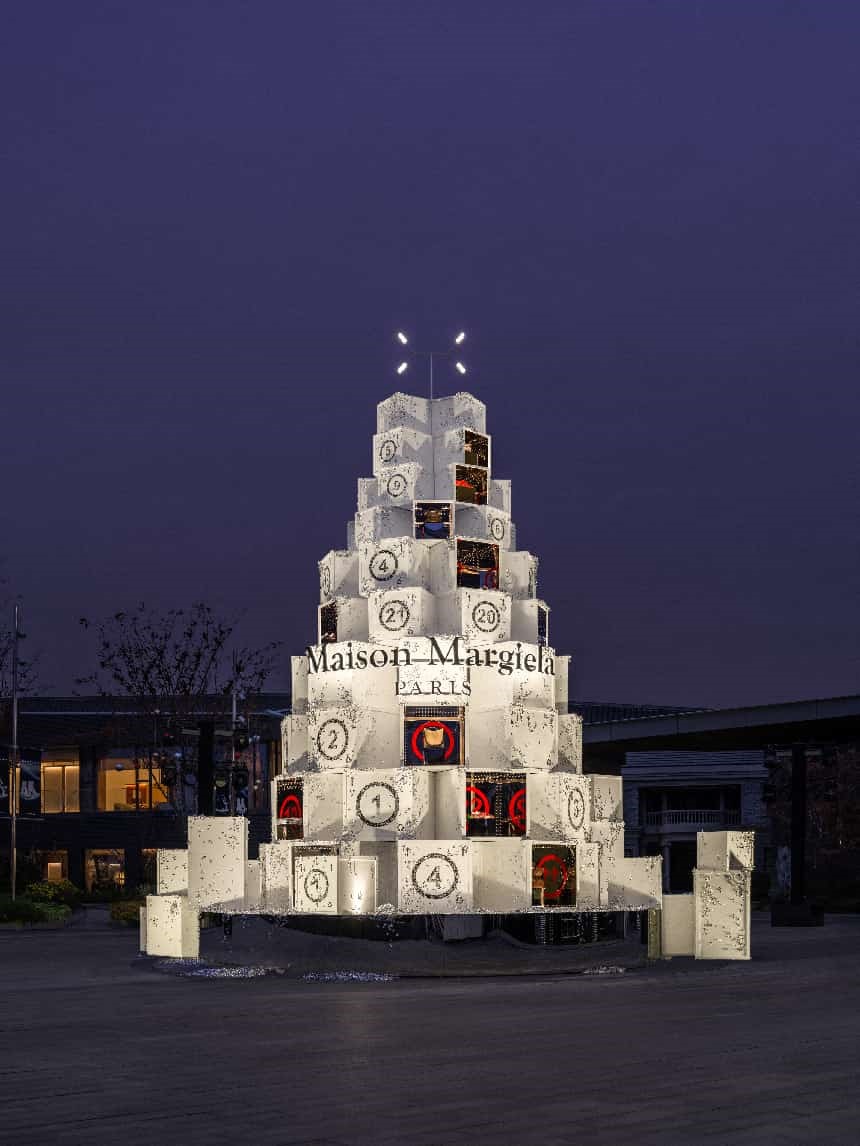苏州仁恒仓街携手法国先锋时装品牌Maison Margiela(下称“马吉拉”),以品牌标志性白色焕新姑苏古城,在岁末为华东消费者呈现出浪漫且别具一格的“无瑕幻梦 冬日盛典”。 马吉拉特别打造的节日主题装置“雪景幻象”位于苏州仁恒仓街的仓街广场。装置以品牌标志性数字编号的为设计灵感,将数字灯箱和金属亮片错落堆叠,犹如穿越至梦幻的冬日奇景,打造出光与影的奇妙交织,点亮璀璨夜空。品牌的编号系统以数字0至23标识品牌的不同产品线,被圈出的数字对应所属系列,在保持品牌“匿名性”美学的同时彰显单品个性。