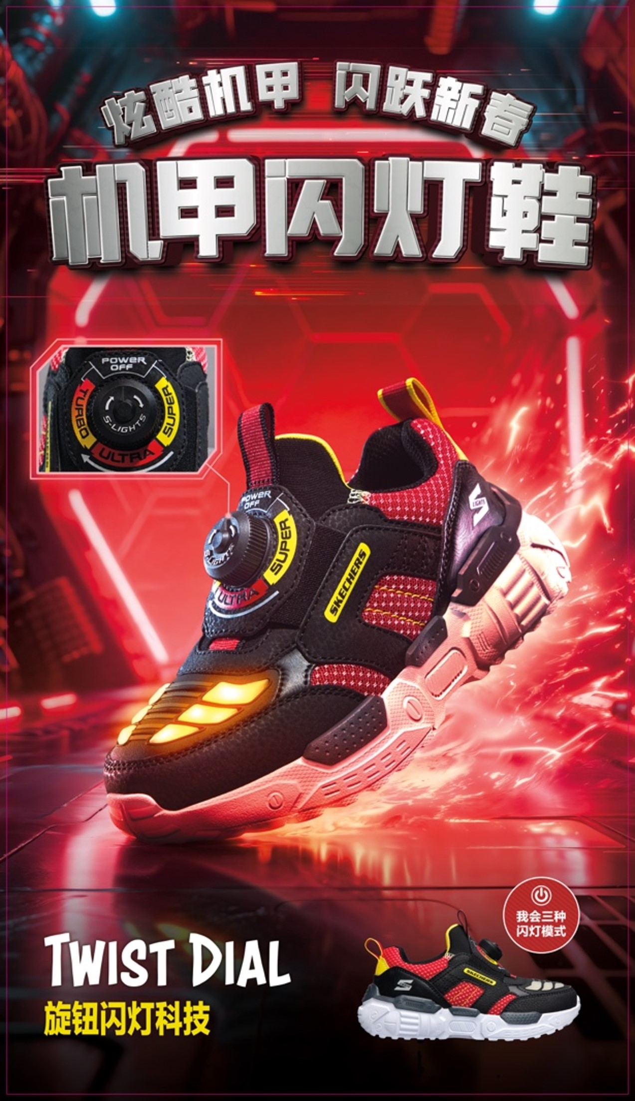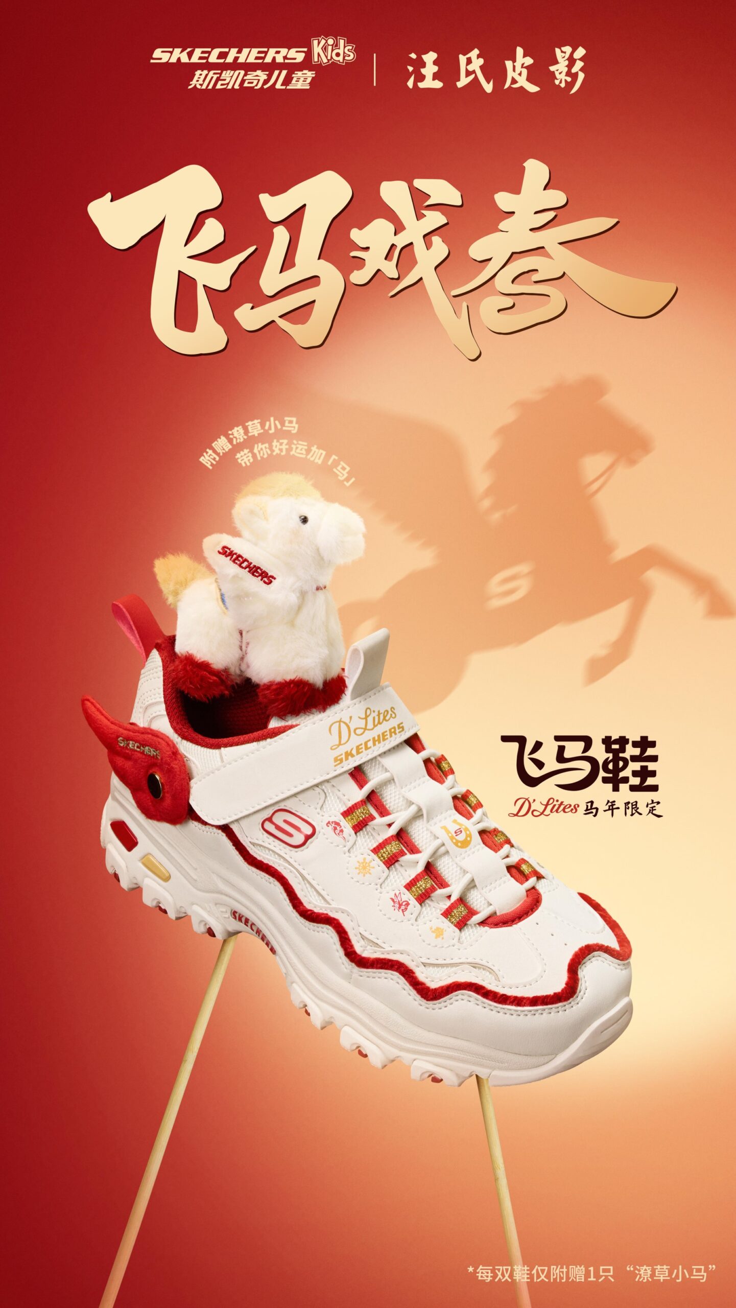 为迎接丙午马年,斯凯奇SKECHERS旗下儿童产品线携手国家级非物质文化遗产“汪氏皮影”第五代传承人、00后青年艺术家党飞华,共同启动“飞马戏春”新春主题企划,打造融合非遗美学与舒适科技的年度产品矩阵。核心产品包括:将汪氏皮影独特的艺术符号与品牌经典D’LITES鞋型融合的“飞马鞋”、以游戏化设计与科技互动元素覆盖多元穿着场景的“战马闪穿鞋”与“机甲闪灯鞋”。