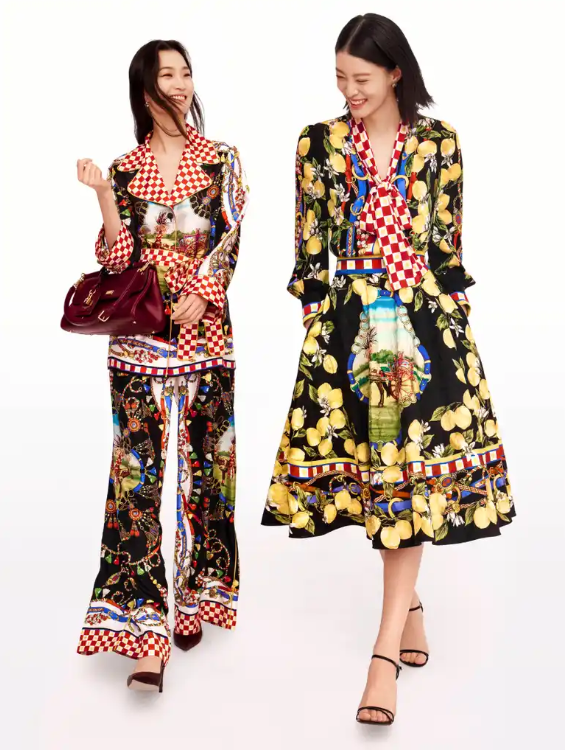 本系列每套造型皆铺展富有故事感的印花图案,描摹与众不同的杜嘉班纳世界:丝质睡衣、衬衫、铅笔裙与连衣裙之上,骏马、马车、雕饰车轮与繁花图案于黑白底色间错落铺陈,构筑和谐而热烈的色彩层次。品牌My Sicily系列手袋以及Devotion系列鞋履,着染满载新春祝福的红色,My Sicily标志性包型包揽节日心愿,而雅致高跟鞋则生动诠释女士柔美气质,增添优雅格调,美好憧憬融入幸运红色臻礼,祈愿新春鸿运。红色与黄色着染于针织单品,与装饰的灵动绒球相映成趣。丝巾与精巧配饰为每套造型注入点睛之笔。