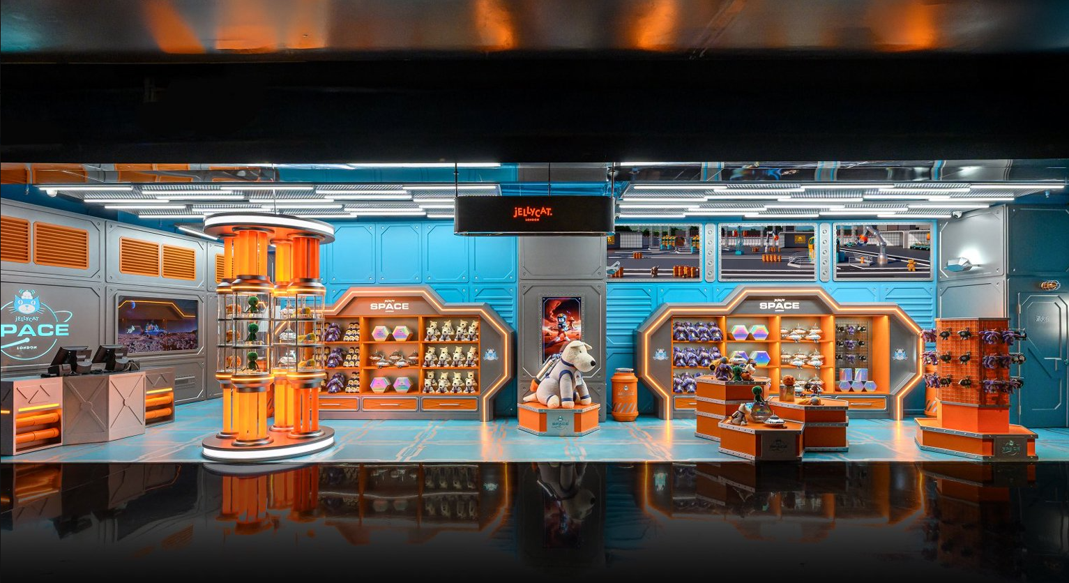 Jellycat 北京SKP-S Space主题旗舰店2月1日焕新启幕,醒目灵动的吉利猫图案与极具视觉张力的撞色设计交织呈现,生动演绎Space系列新品的同时,更营造出沉浸式太空科幻氛围。在这里,不仅可以探索全系列太空玩伴,还能拍摄打卡科幻感十足的场景,珍藏快乐时光。商场外特设太空车主题装置,延续品牌标志性蓝橘配色,以未来感造型静驻空间,将星际漫游的想象从街头延展至店内,开启一段完整的太空奇遇。