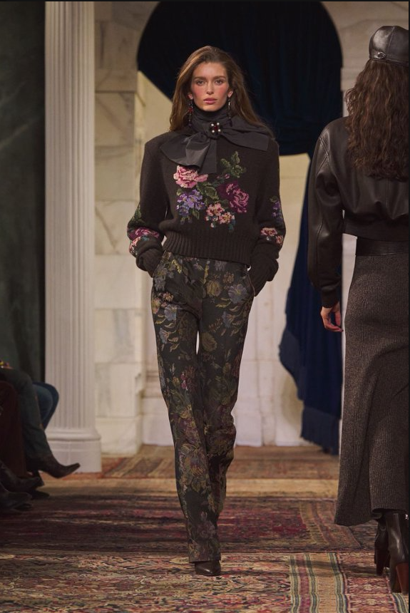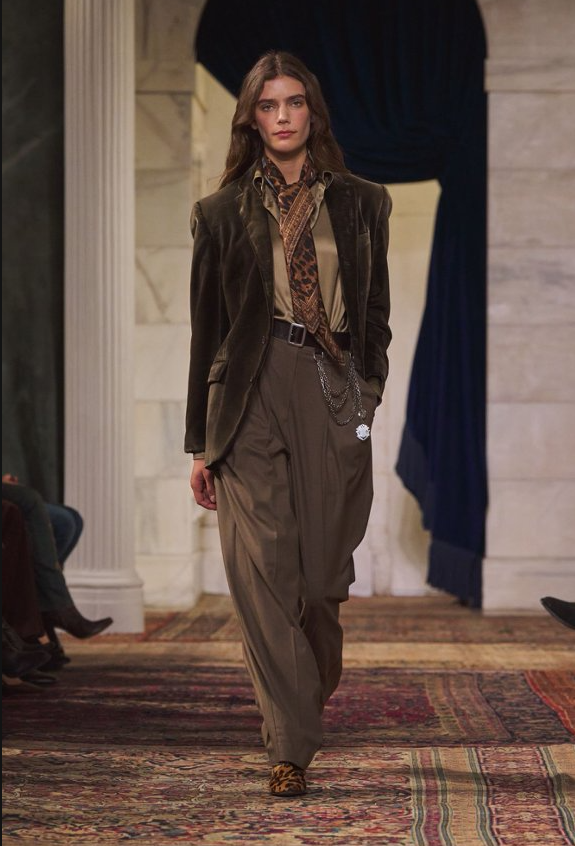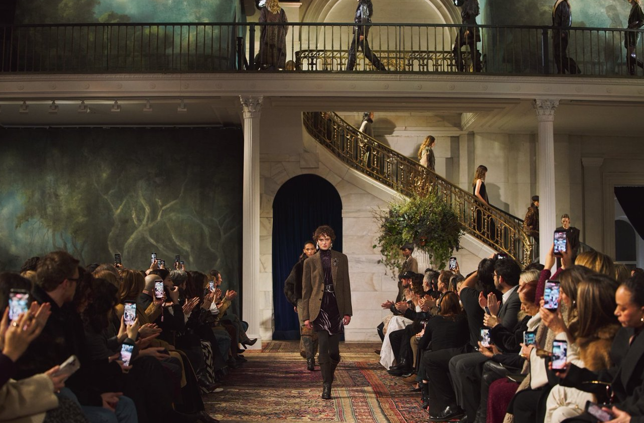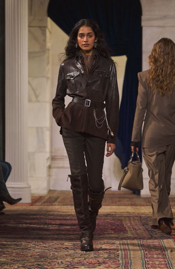 RalphLauren拉夫劳伦发布2026秋季系列。全新系列将历史韵味悄然融入现代语境,在实用优雅与感性张力间寻求精妙平衡,令服饰既适合日常穿着,又能触动心弦。 本季通过剪裁的巧妙融合,演绎刚柔并济的双重魅力:复古西装、精致胸衣、链甲细节与利落肩线相映成趣。浓郁的大地色系缀以丰富金属刺绣,赋予系列优雅与活力,亦构建出柔软与力量间的细腻对话,精致西装、曼妙曲线与率性运动风于此和谐相融。