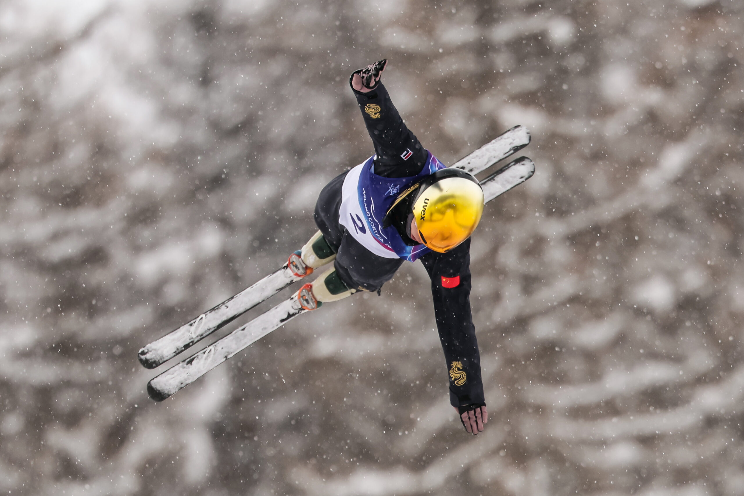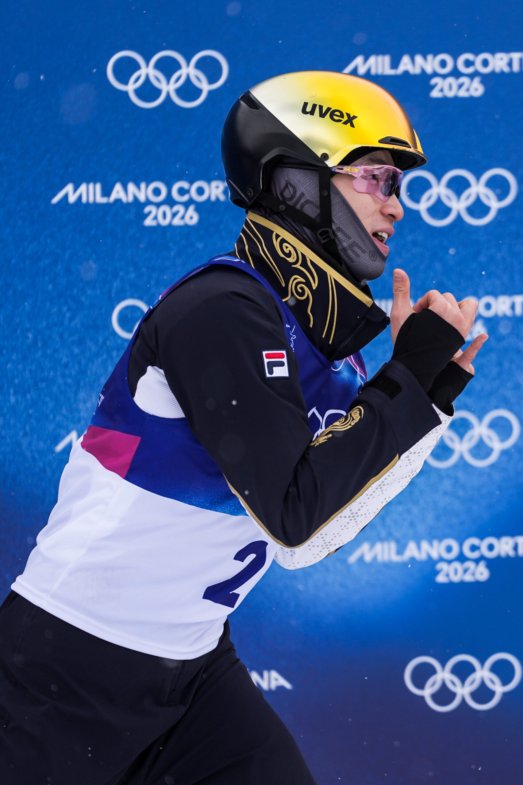 FILA助力中国队再创历史。自由式滑雪男子空中技巧上演巅峰对决,四位中国健儿携手闯入决赛第二轮。 王心迪以难度系数5.100的完美一跳斩获金牌,中国队成功蝉联该项目金牌,继续本届赛事的蝉联之路。 王心迪与妻子徐梦桃双双夺冠,成为该项目首对包揽个人金牌的夫妻。 李天马也以非凡表现,斩获铜牌荣誉。