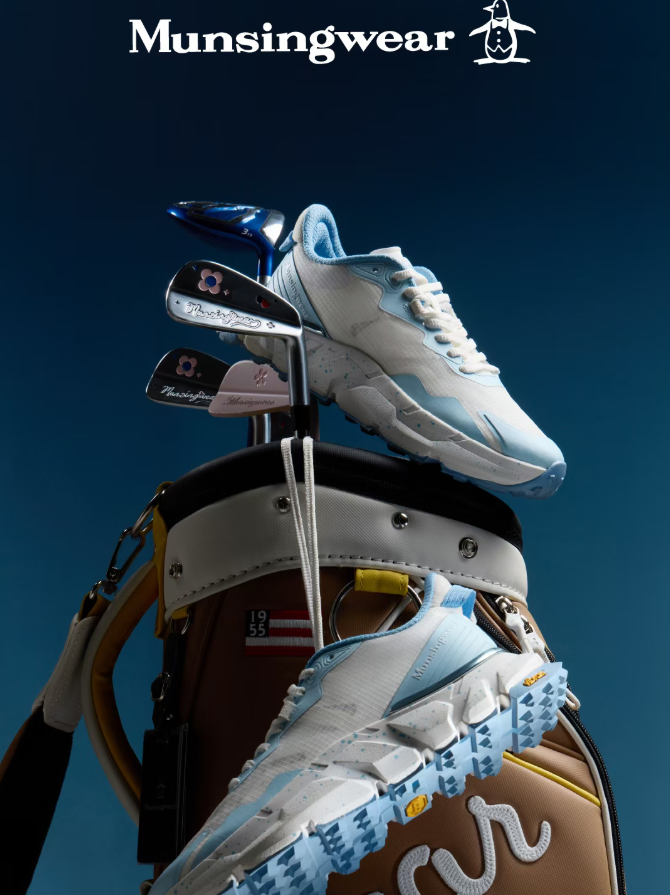 Munsingwear万星威推出全新APEX系列。这一鞋款为专业高尔夫运动打造,采用湿地止滑大底、轻量高性能材质与仿生抓地底纹。全牛皮面设计,结合浮雕工艺,呈现出独特的鞋面质感和设计风格。