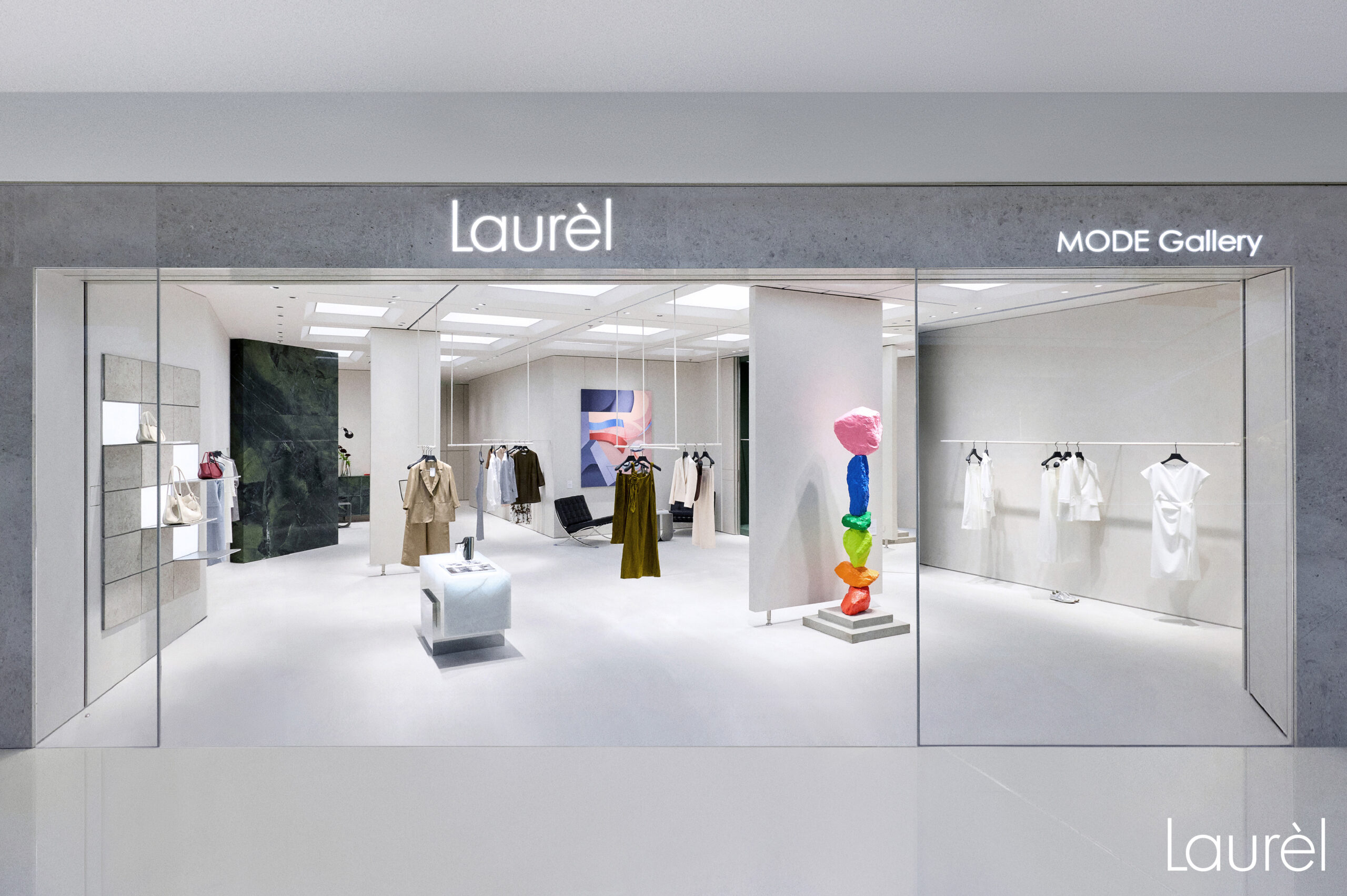 Laurèl MODE Gallery首家策展式零售空间,4月23日于深圳万象城正式揭幕。 从包豪斯美学出发,将德语中代表时装理性力量的「MODE」,与承载艺术感性表达的「Gallery」相结合,深化艺术与时装的跨界与融合。